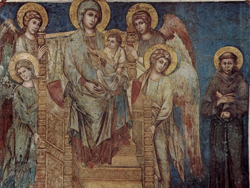 Francesco, infatti, aveva una grande venerazione per il ruolo di Maria nel mistero dell’incarnazione e della redenzione. Egli la salutava con titoli di gloria e grandezza, come “vergine fatta Chiesa”, “santa genitrice di Dio”, “sposa dello Spirito Santo”. In lei riponeva tutta la sua fiducia e le chiedeva di intercedere per lui e per i suoi frati presso il suo santissimo Figlio.
