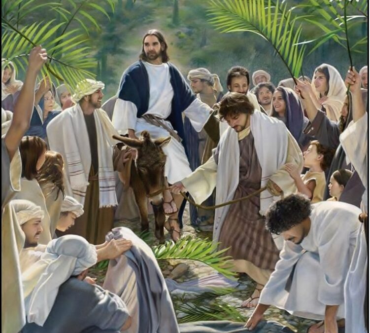 Qui la folla numerosissima, radunata dalle voci dell’arrivo del Messia, stese a terra i mantelli, mentre altri tagliavano rami dagli alberi di ulivo e di palma, abbondanti nella regione, e agitandoli festosamente rendevano onore a Gesù esclamando «Osanna al figlio di Davide! Benedetto colui che viene nel nome del Signore! Osanna nell’alto dei cieli!».