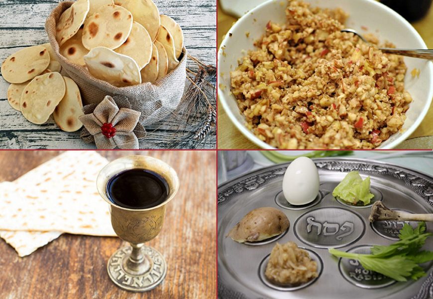 Charoset – Una miscela dolce di colore marrone che rappresenta la malta e i mattoni usati dagli schiavi ebrei per costruire i granai o le piramidi d’Egitto. Nelle case degli ebrei ashkenaziti, il Charoset viene tradizionalmente preparato con noci tritate, mele grattugiate, cannella e vino rosso dolce.