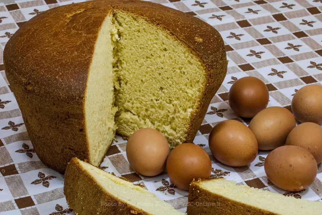 Poi abbiamo il Pane, Il chicco di grano se non muore non genera frutto. Evidente quindi il richiamo alla morte e resurrezione. E’ il simbolo dell’Eucaristia, il pane spezzato dell’Ultima Cena. Per il pane abbiamo molte varianti sia per cottura, sia per eventuali ingredienti aggiunti nella lievitazione o nella forma. Così da avere prodotti unici nel gusto e nell’aspetto, da essere tramandati fino ai giorni nostri.